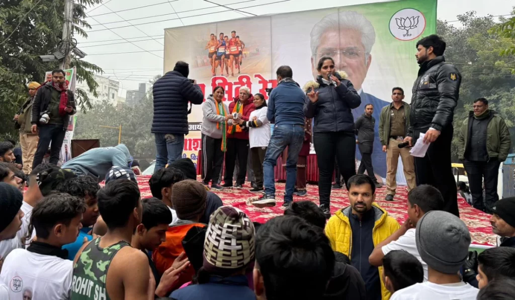 Following the fun-filled warm-up, the guests of honor were introduced, with special thanks to Shri Kailash Gahlot for his continuous support. With great enthusiasm, the marathon began, with participants of all ages joining in for the run from and back to the National Institute of Malaria Research (NIMR). The marathon saw a fantastic turnout, with people of all ages—young and old—taking part in this healthy and spirited event.