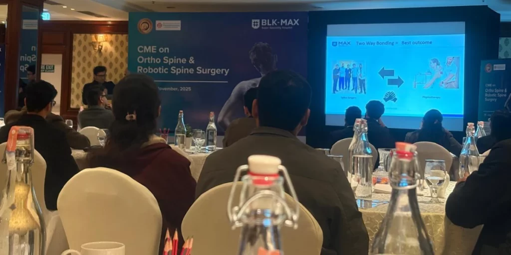 The keynote address was delivered by Dr. Puneet Girdhar, Head of Ortho Spine Surgery and Spinal Deformity, BLK-MAX Super Speciality Hospital. Dr. Girdhar gave a presentation on the Application of Robotics in Spine Surgery, illustrating how robotic-assisted systems are revolutionizing precision, surgical workflows, and patient outcomes. Dr. Manoj Kumar, Senior Consultant, Orthopaedic Spine Surgery, elaborated on the advances in Minimally Invasive Spine Surgery (MISS) and its significant benefits in terms of recovery, reduced surgical trauma, and improved patient satisfaction.